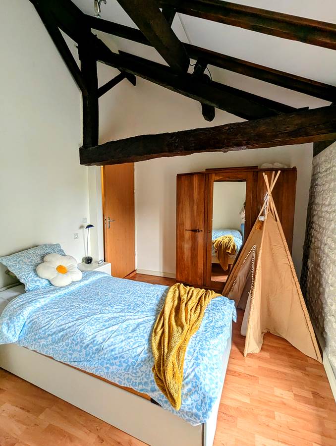 Au Secret de Campagne, ce rêve se réalise dans notre charmante ferme tourangienne des années 1600. Profitez de votre retraite privée de 3 chambres et 2 salles de bain, avec une cuisine complète, un salon et un balcon donnant sur les champs.